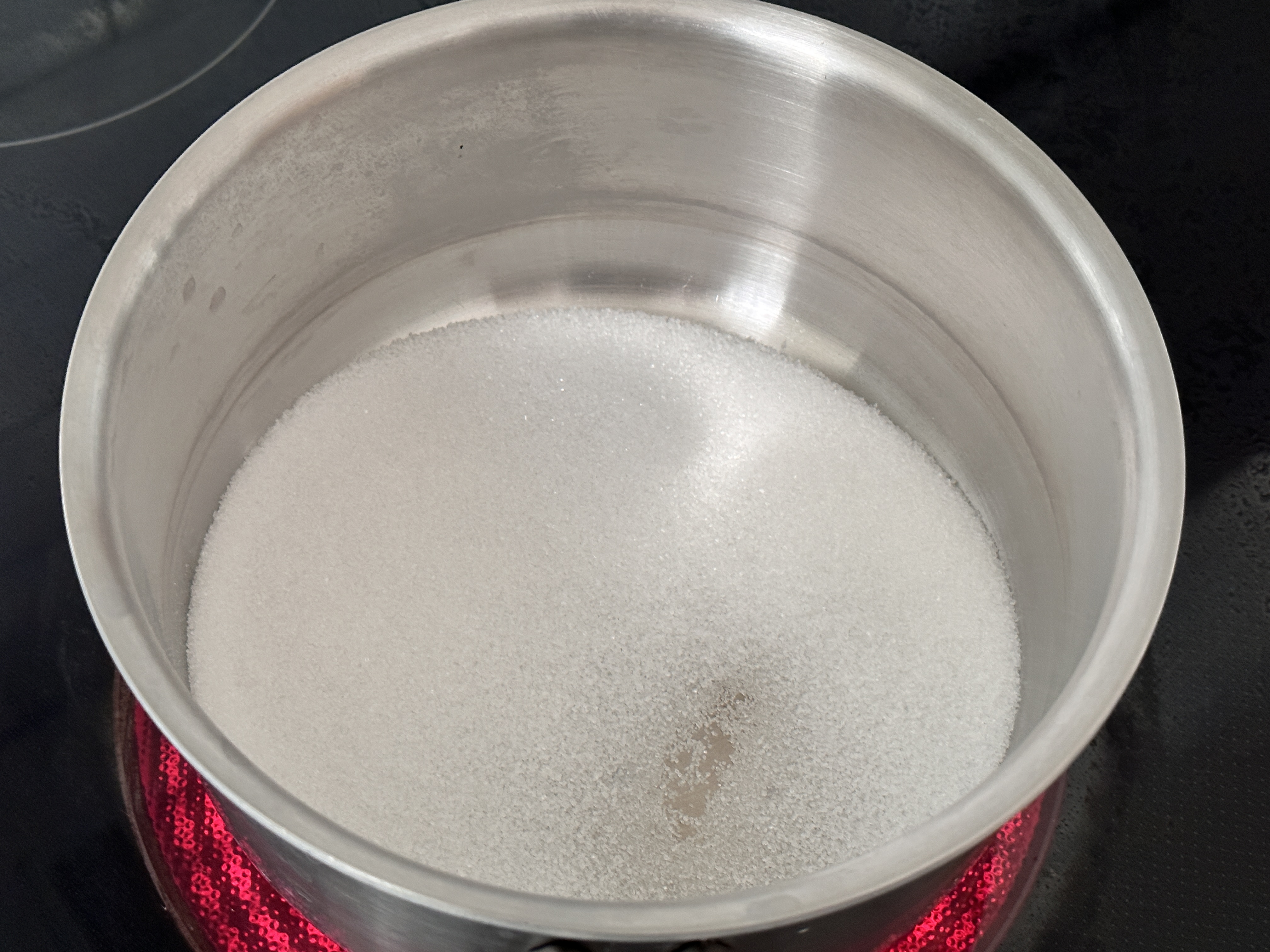 2. 냄비에 설탕을 얇게 깔아 카라멜화 시켜주세요.