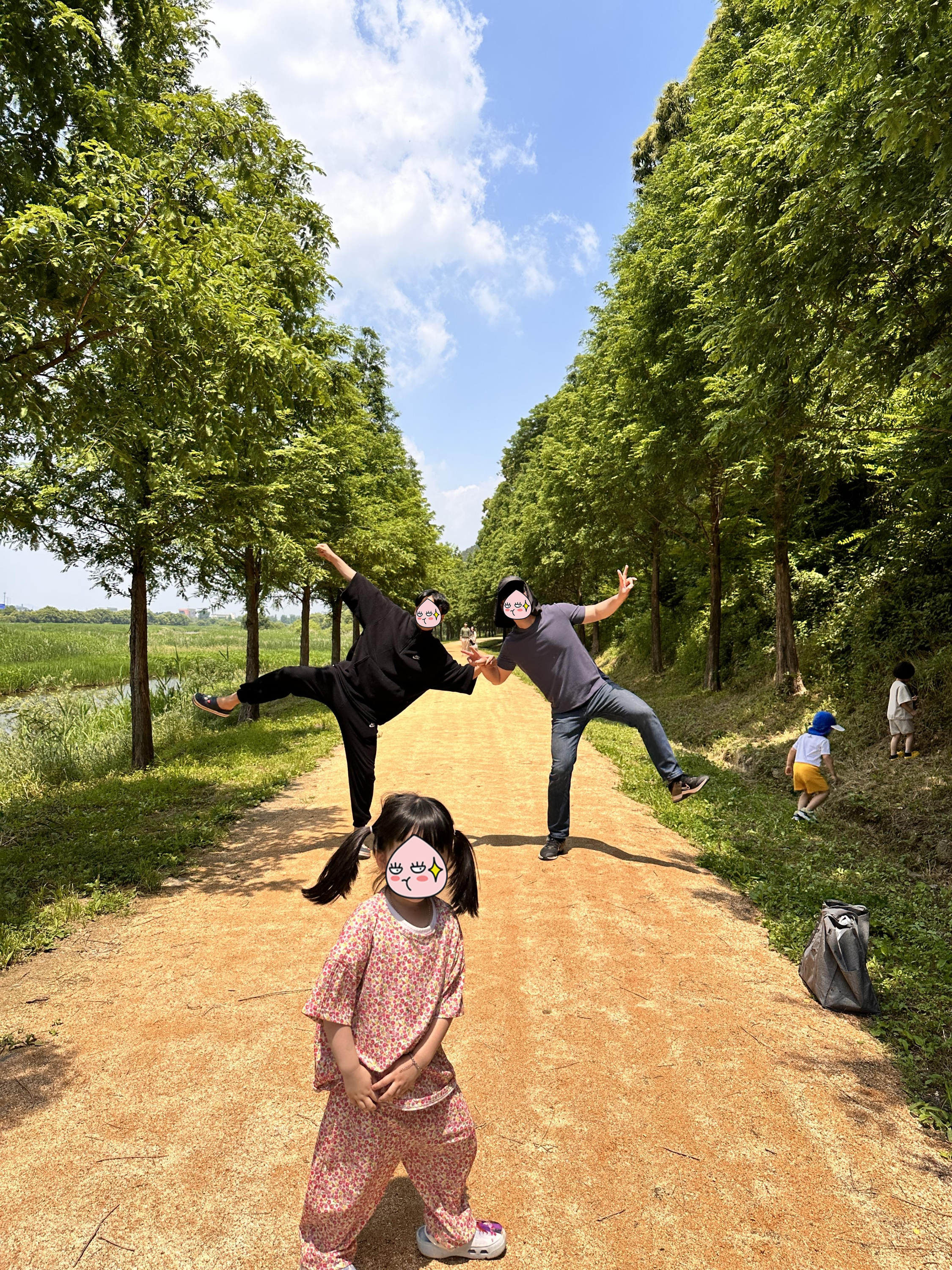 진천 농다리는 심어져있는 나무들이 위로 쭉쭉 뻗은 수형이라 그늘이 적습니다. 가벼운 양산 또는 모자를 꼭 챙겨주세요. 같이 방문했던 가족들이 모자와 선크림이 없어서 꽤나 고생했답니다. 농다리를 건너야 한다면 유모차는 가벼운 유모차로 챙겨주세요. 농다리를 건널 때 많이 힘들답니다.