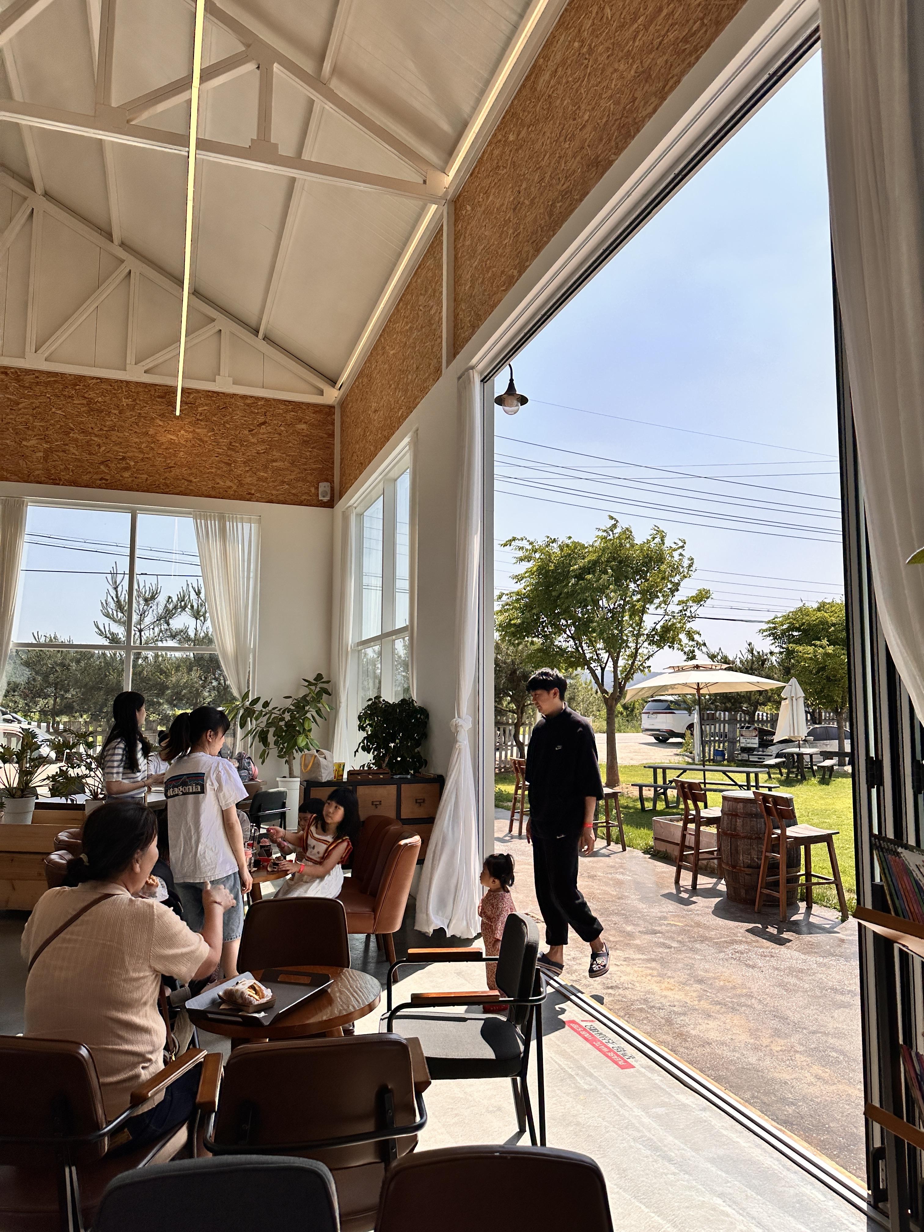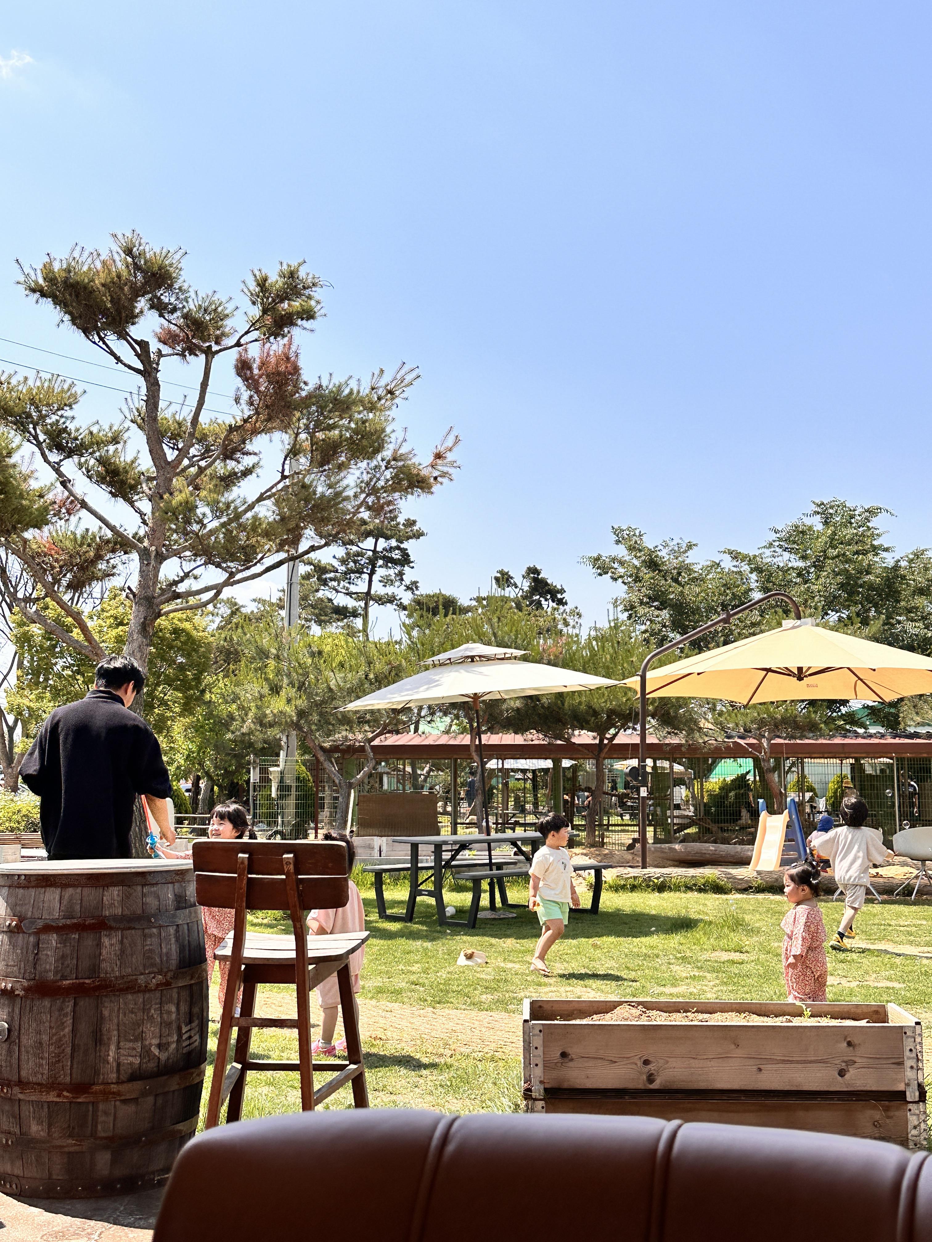 아이들이 노는 공간이 카페 내부에서 한 눈에 보여 이 점이 아주 만족스러웠습니다. 뛰어놀 수 있는 잔디밭이 잘 관리되어 있는것도 만족스러운 포인트 중 하나입니다. 커피를 좋아하는 친구는 커피 맛이 좋아서 만족스러웠다고 하네요. 개인적으론 오미자차가 아주 좋았습니다. 여름의 열기를 싹 가셔주는 맛 이었어요.
