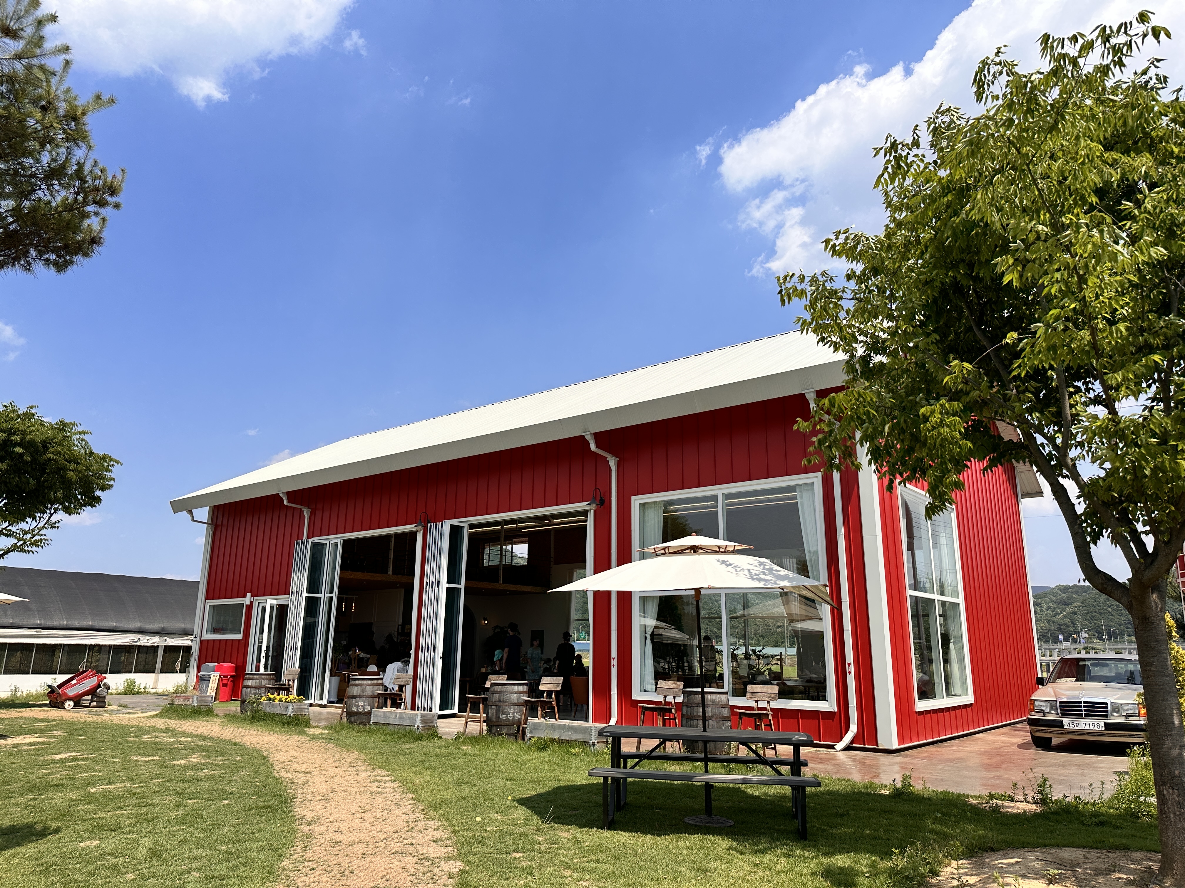 진천 에코팜에 다녀왔습니다. 친절한소현쌤은 8살, 5살 난 아이가 있고 같이 방문한 가족들은 3세부터 6세까지 다양한 연령대의 아이들이 있었습니다. 같이 여행온 친구의 추천으로 방문한 진천 에코팜. 진천 농다리에서 10분 안쪽으로 도착할 수 있는 카페로 아이들이 동물체험과 함께 흙놀이를 즐길 수 있는 곳이었습니다. 따가운 태양을 피해 얼른 카페로 피신 해줍시다.
