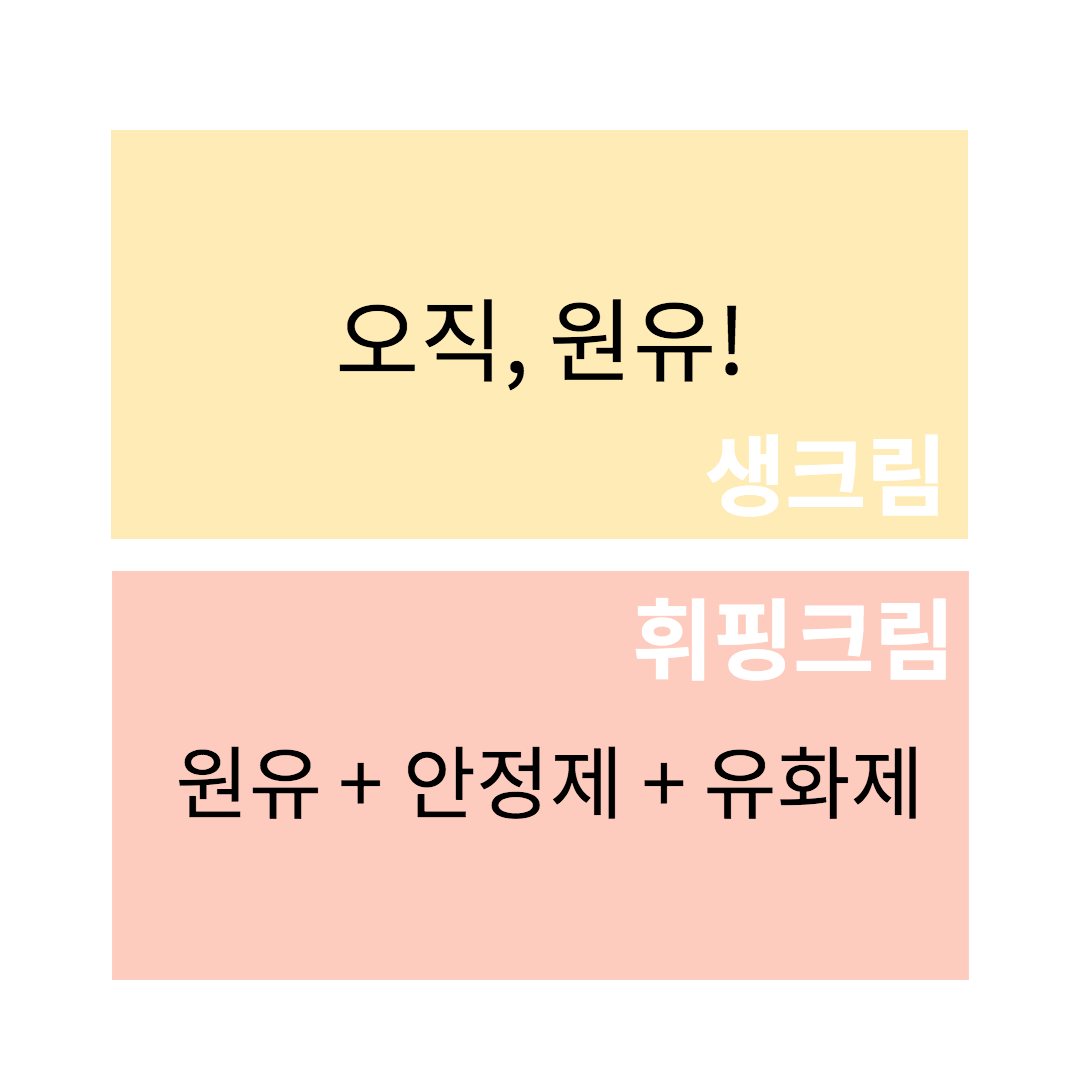 생크림과 휘핑크림의 차이점? 과연 무엇일까요.