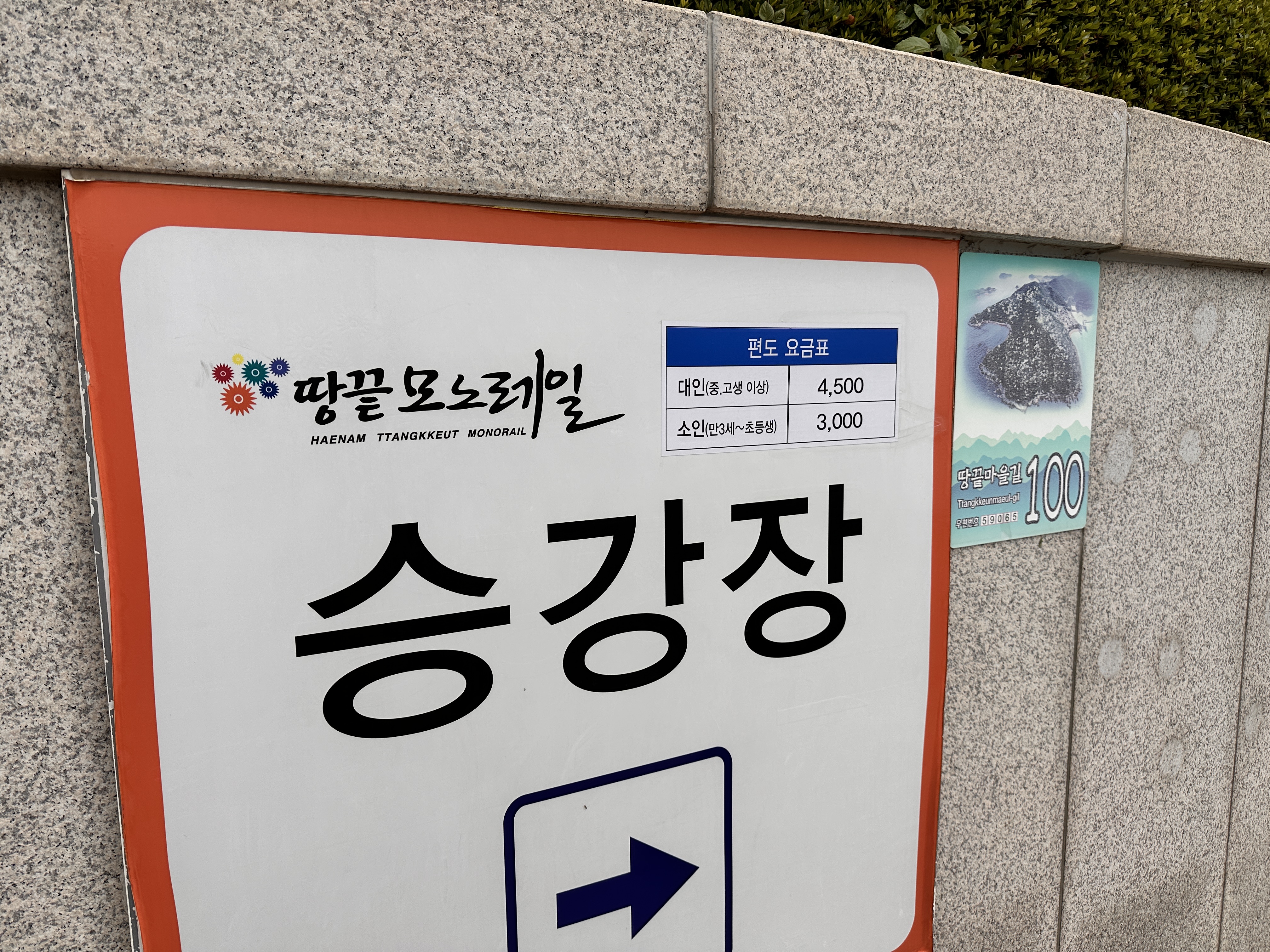 땅끝 모노레일은 편도로 표를 끊을 수 있습니다. 아예 모노레일 주차장에서 왕복으로 끊을 수도 있고 꼭대기로 올라가서 편도로 결제 가능하니, 원하시는 코스로 이용하시면 되겠습니다.