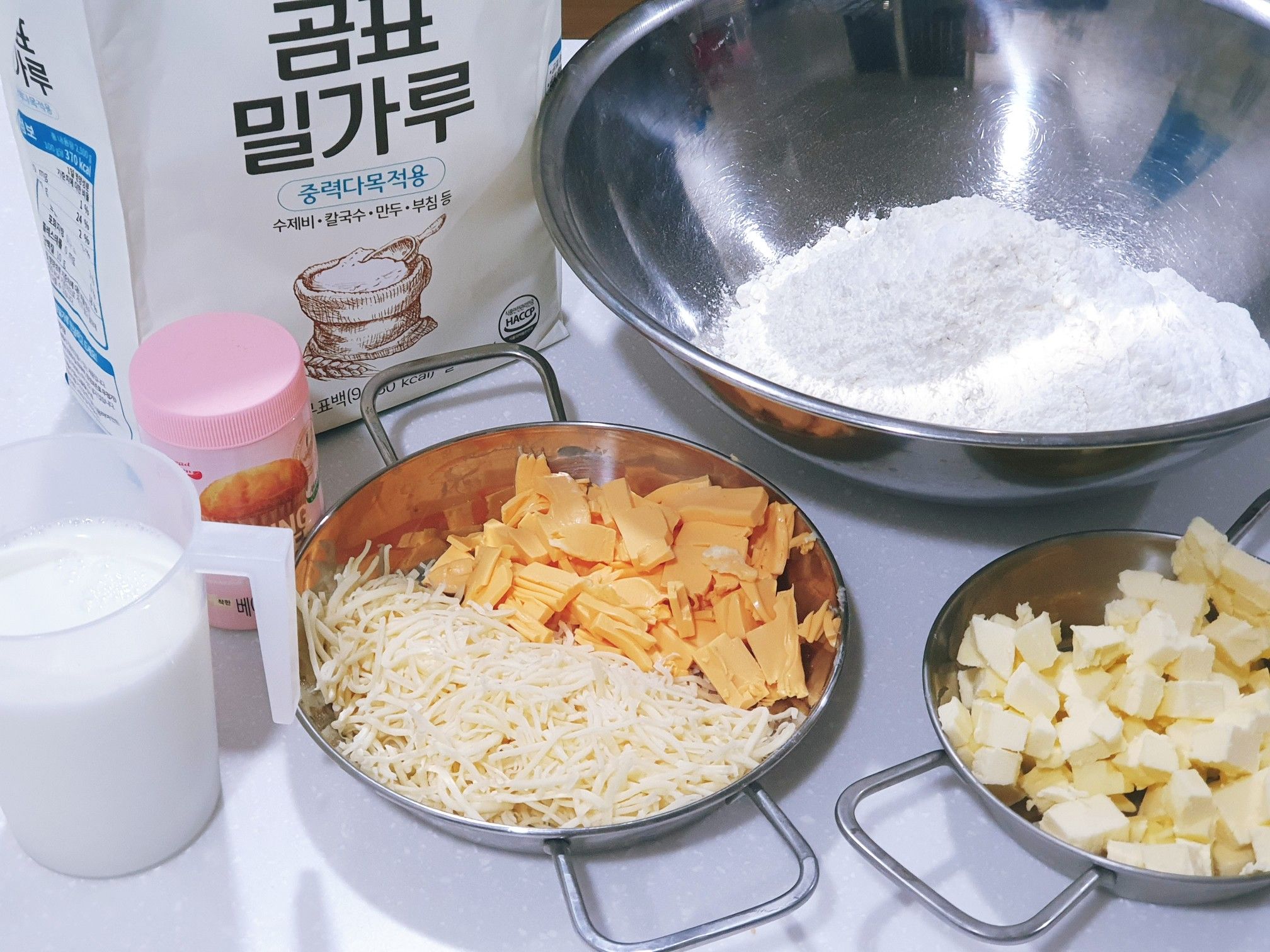 밀가루, 우유, 치즈 들도 모두 냉장고에서 바로 나온