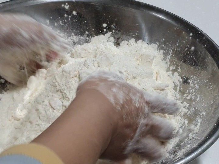 버터를 밀가루에 버무린다는 생각으로 버무려주세요.